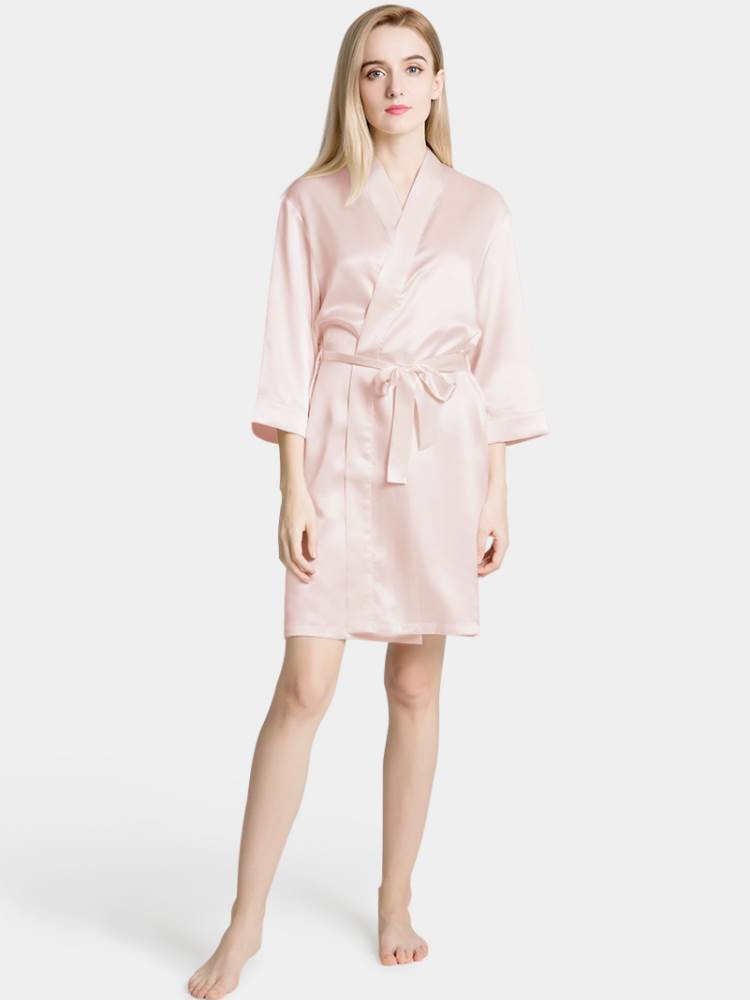 Light Pink Silk Satin Kimono Short Robe