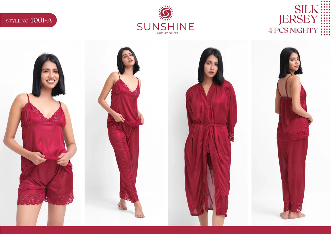 Experience luxury in our 4pcs Silk Jersey Bridal Nighty. Soft, flowing fabric meets delicate lace,...