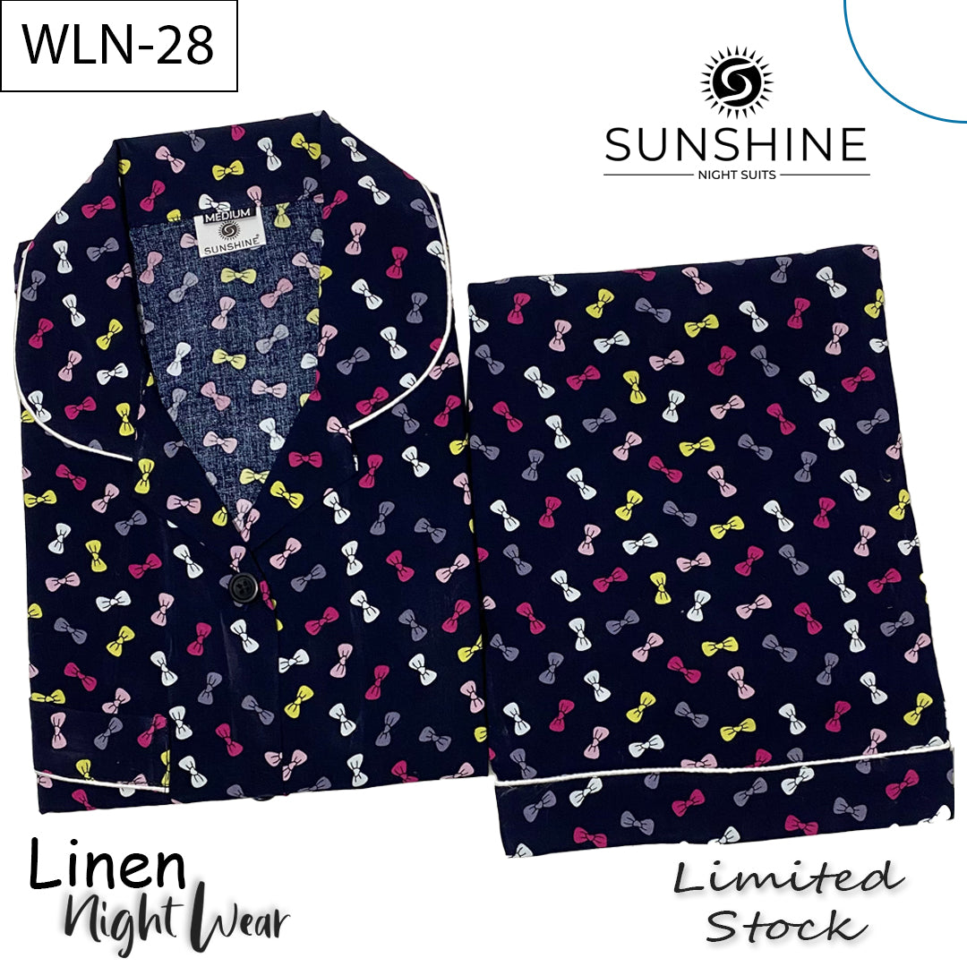 Navy Blue Bow Printed Linen Nightdress β WLN-28