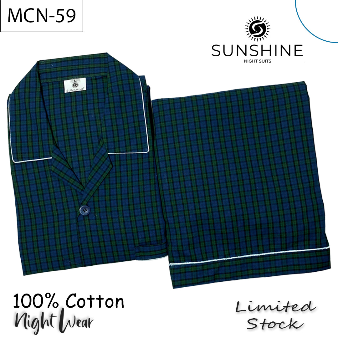Dark Blue Green Check 100% Cotton Night Suit β MCN-59