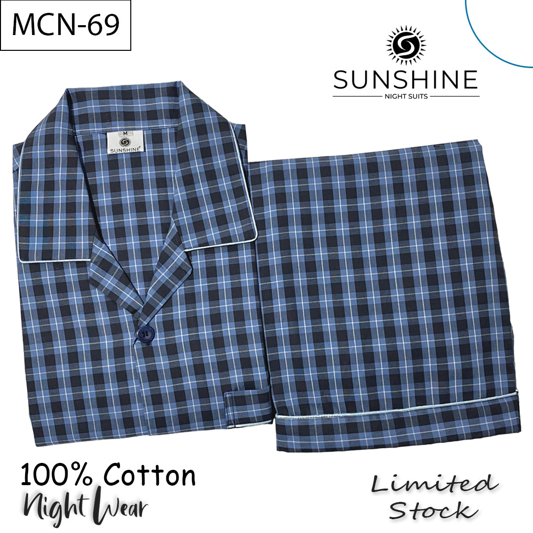 Classic Blue Check 100% Cotton Night Suit β MCN-69