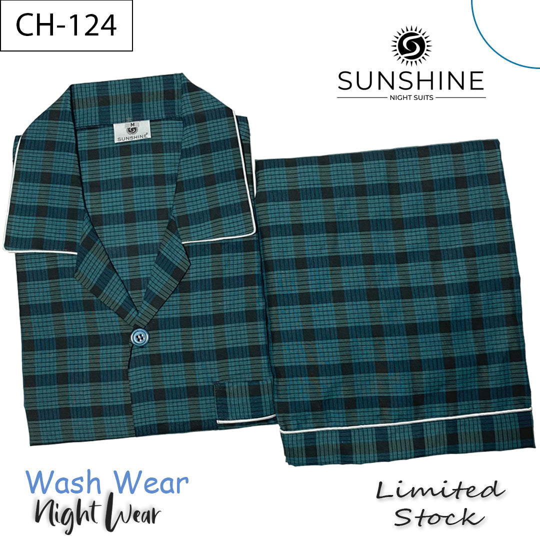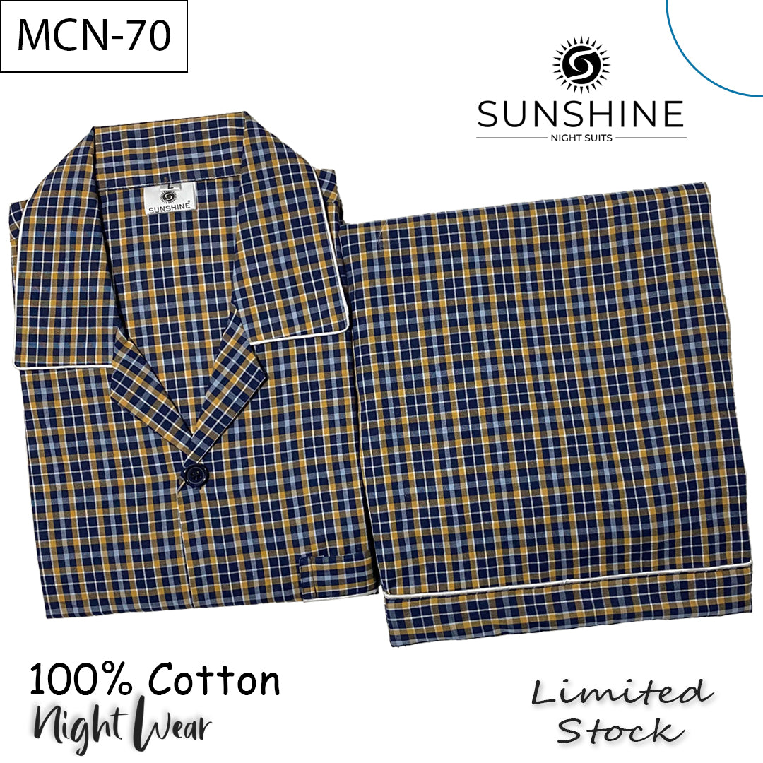 Blue Yellow Plaid Check 100% Cotton Night Suit β MCN-70