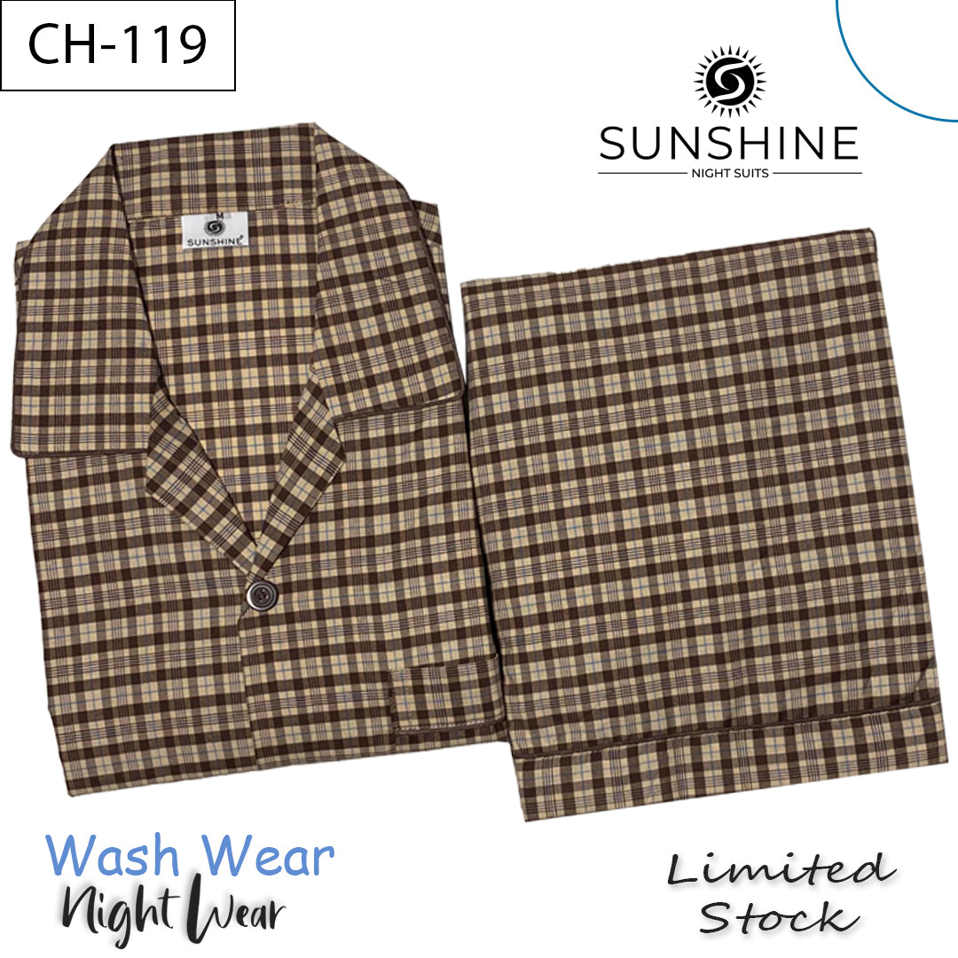 Light Azure Check 100% Cotton Night Suit β MCN-64