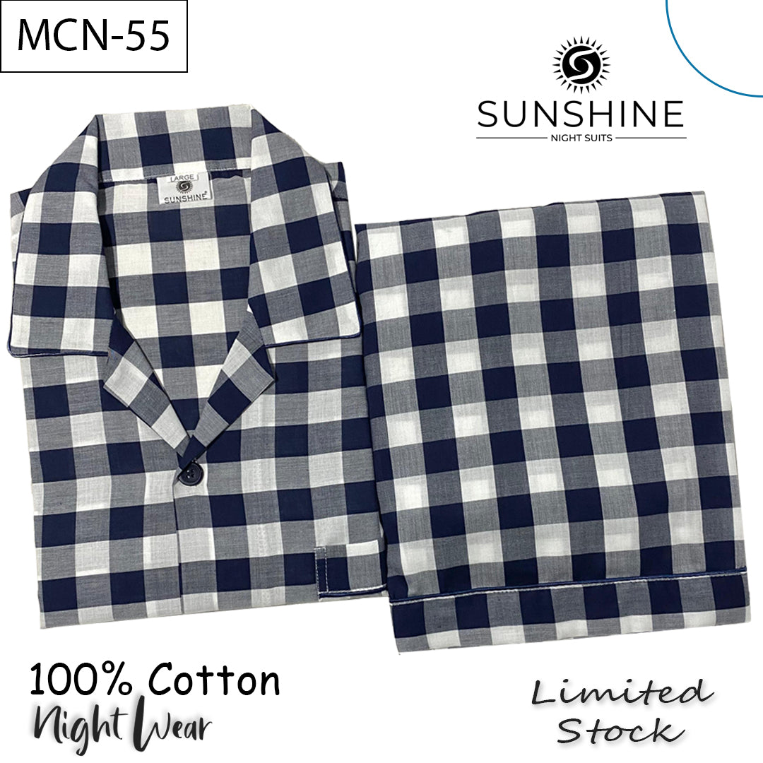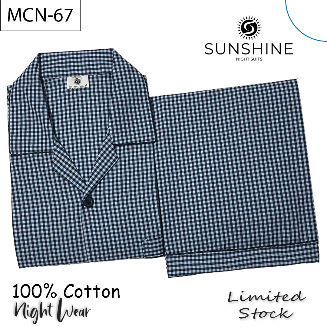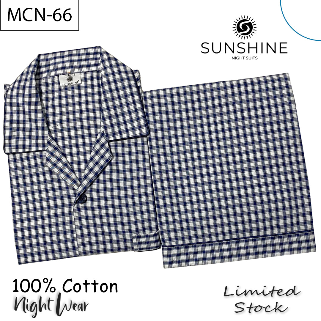 Navy Blue White Check 100% Cotton Night Suit β MCN-66