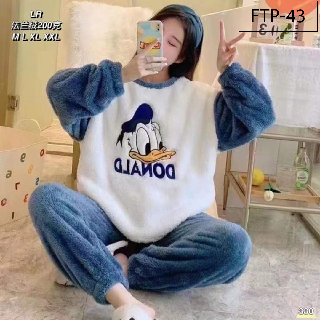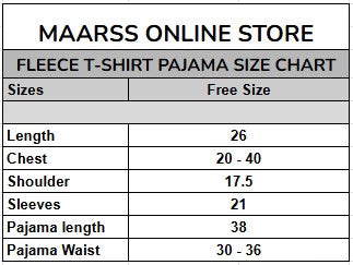 This fleece T-shirt pajama set comes in Free Size, designed to fit comfortably for most body types.
