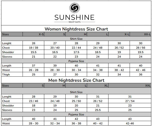 - Includes: Matching nightwear for couples (1 set for men + 1 set for ladies)