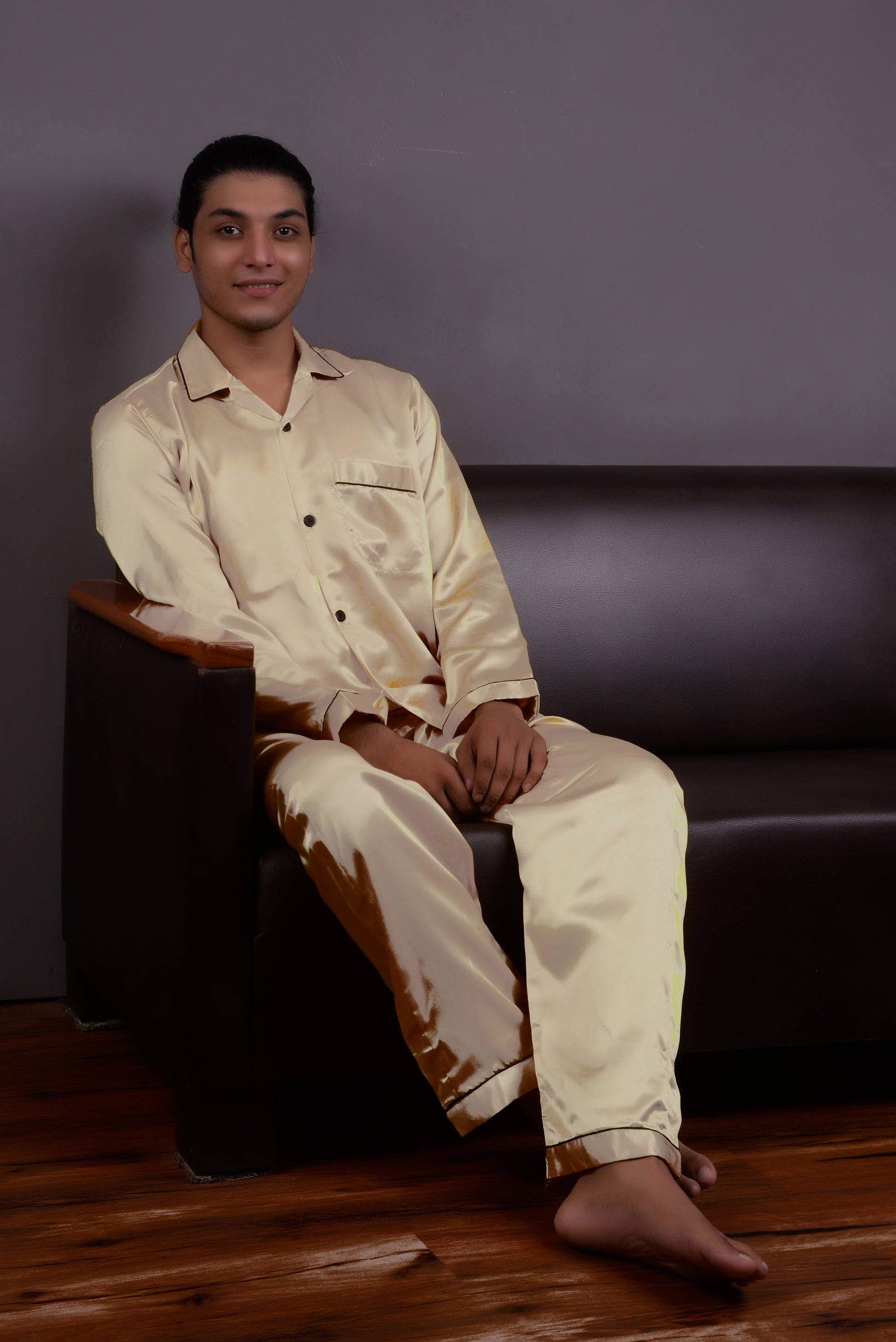 Light Golden Silk Couple Nightwear Set – Luxurious & Romantic