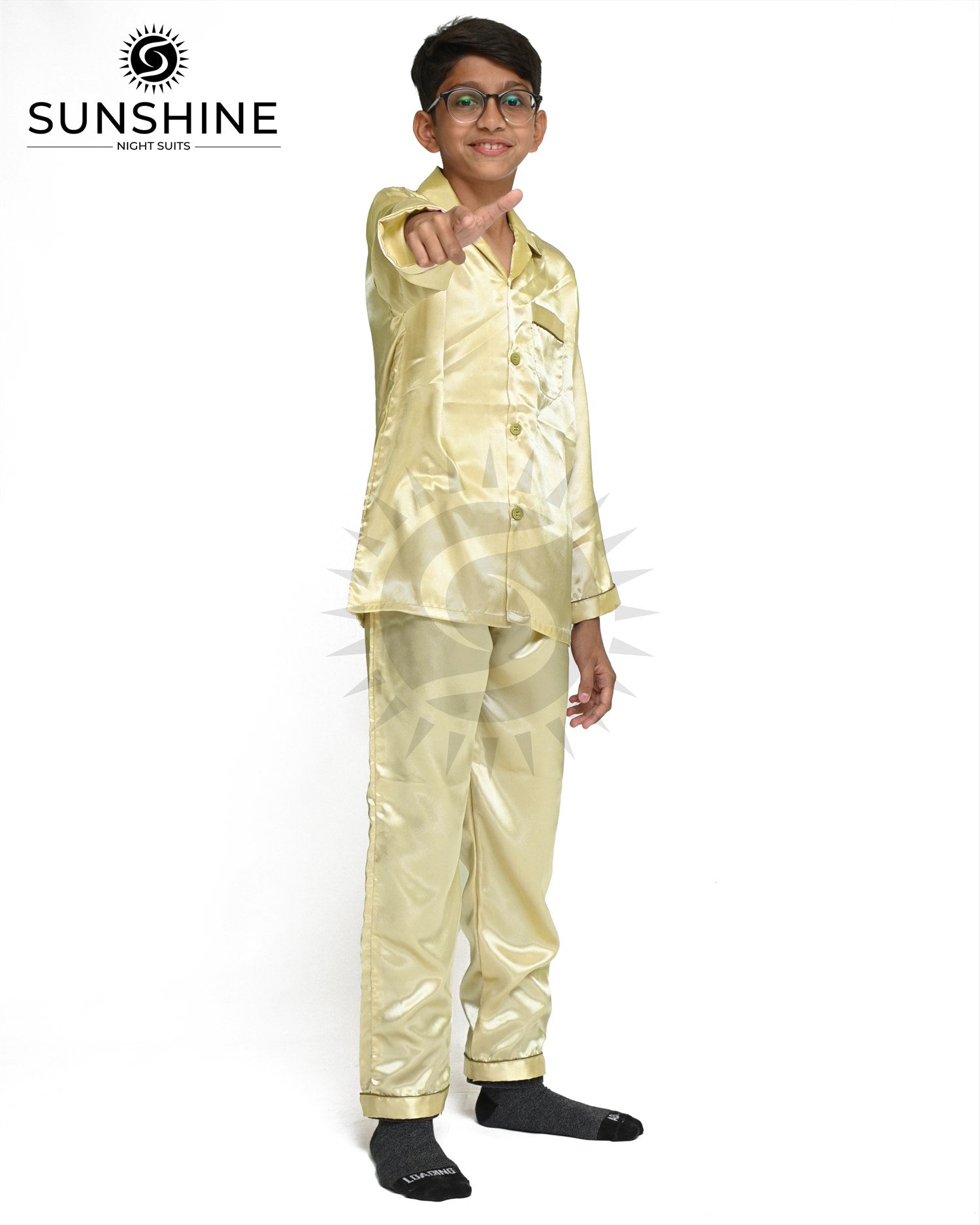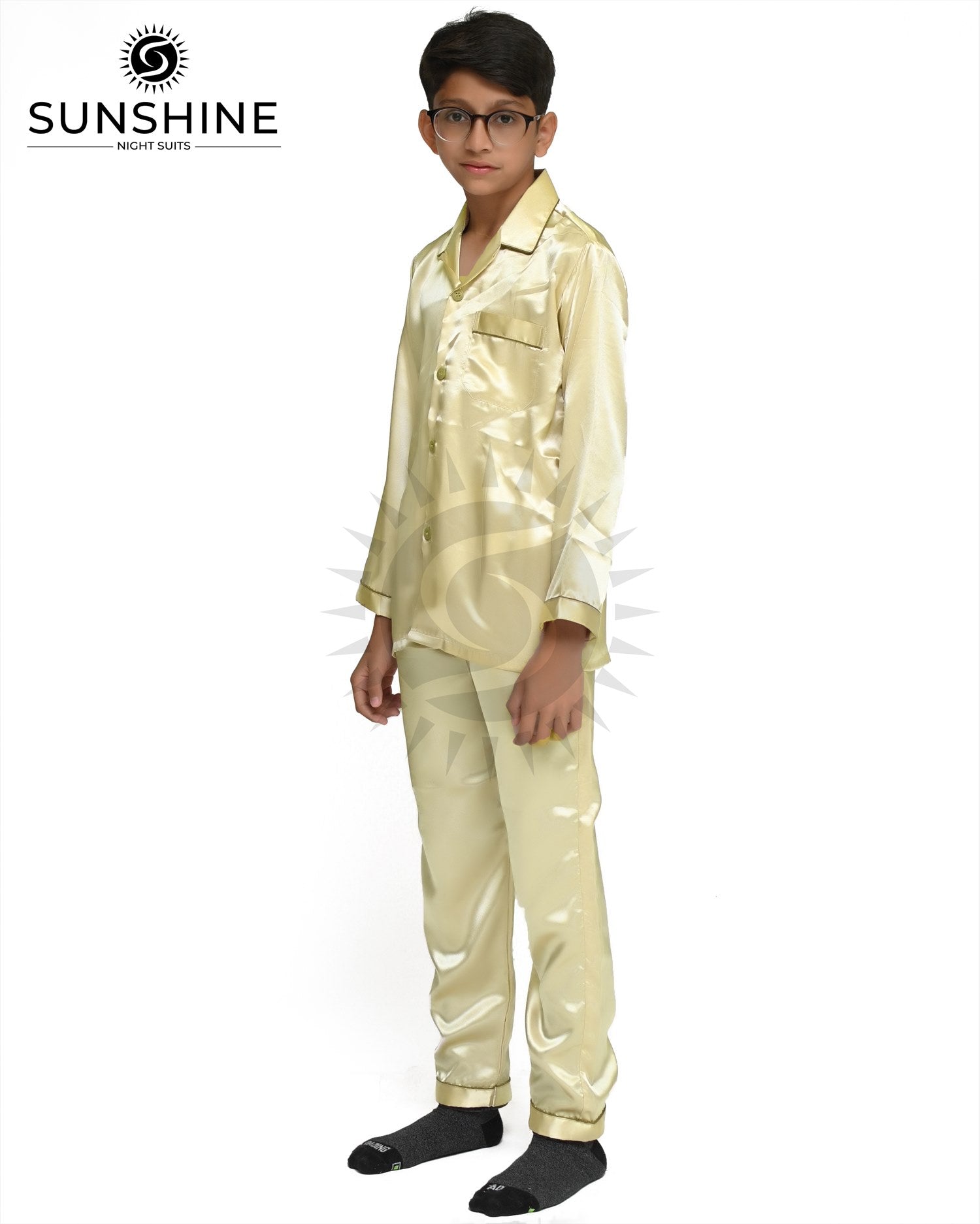 Introducing our exquisite light golden silk nightwear collection for boys, where style meets comfort. Crafted from the finest silk, our nightwear guarantees a night of uninterrupted, blissful sleep. Your little one will not only feel snug but also look effortlessly chic.